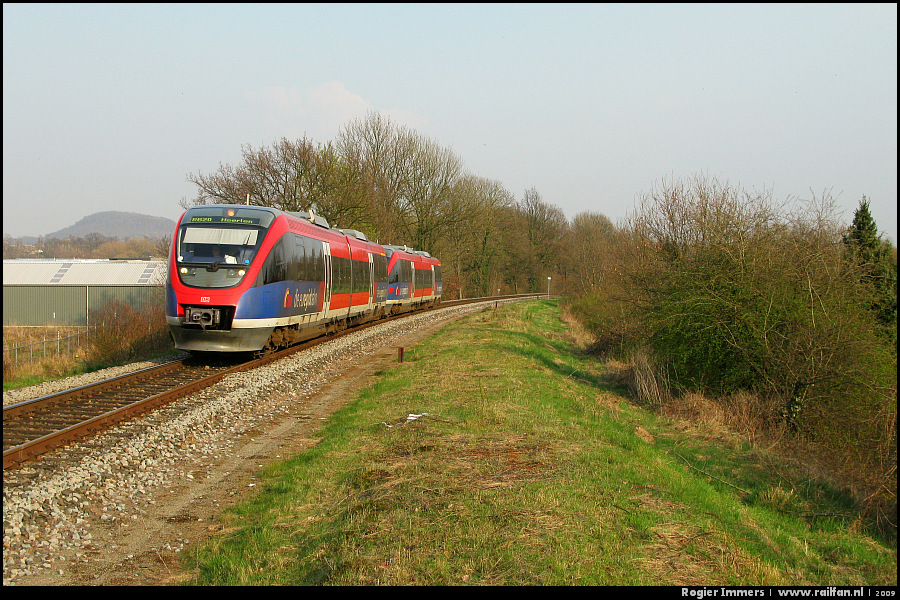 Een Talent van de DB is als Euregiobahn op weg naar Heerlen en passeert de boog tussen Haanrade en Eygelshoven op 3 april 2009 © www.railfan.nl