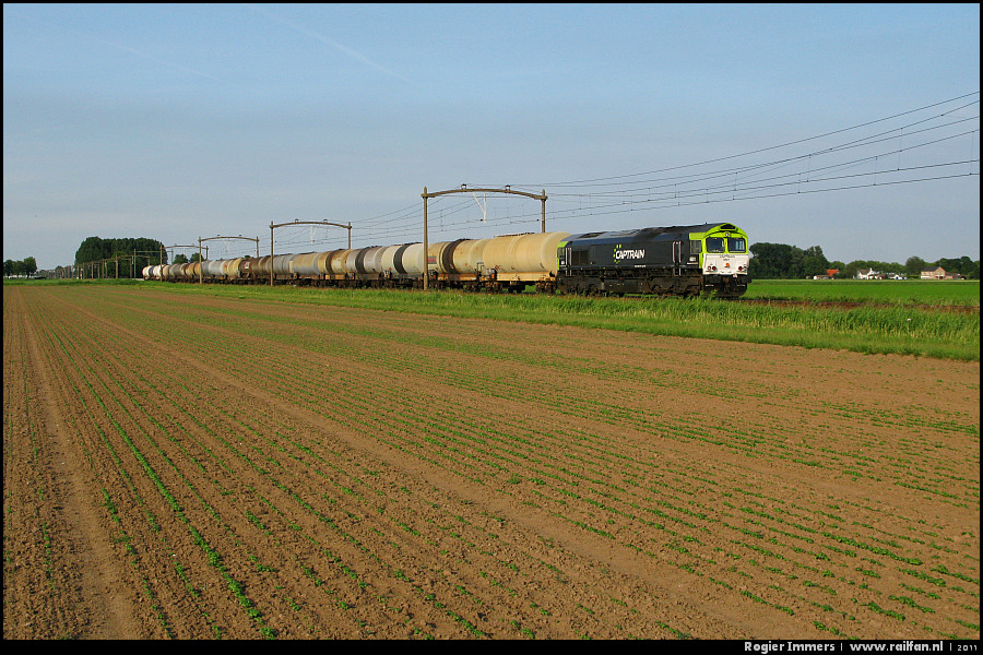 CapTrain 6601 met ketelwagens langs Zevenbergen richting België op 14 juni 2011 ©