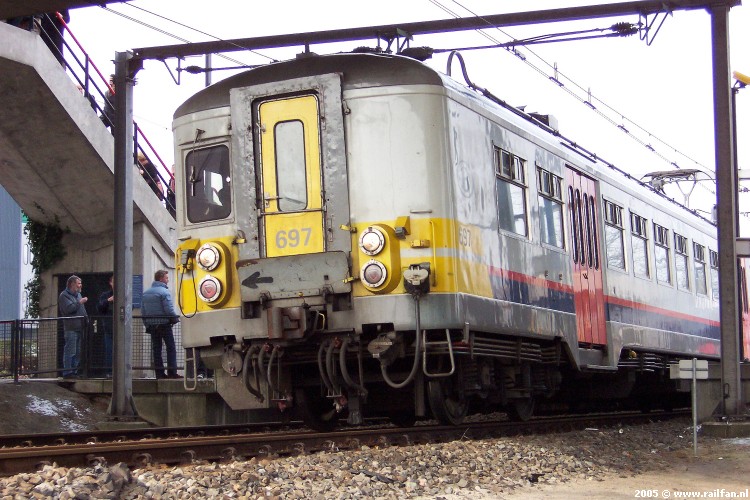 NMBS treinstel 697 vertrekt vanuit Maastricht Randwyck naar Visé en Luik. 5 maart 2005 © www.railfan.nl